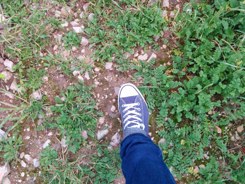 A few weeks later, while I was walking this time uphill the Filoppapou southern side with Zoe, she told me about her game: One must not step on grass. We would thus do the least harm in the wild greens, and it’s funny too. So, we were heading for the bare ground and the rocks. I was reminded of the game last week with Petros – yet in Zoe’s game our efforts were collaborative. We would sometimes help each other, holding by the hand to help manage a long jump and so on. After a short while, when the vegetation wasn’t that dense anymore as we were moving uphill, Zoe started walking more hastily, jumping around, often picking the more challenging options – I was pretty much left behind. As she was walking, she was making some funny choices on how to walk or where to jump to. I asked her why – pretty much shouting, and she told me that Oh! She forgot to tell me that if I have the choice of going on a rock, I should prefer that to the bare ground. We met on a rock, which felt like an island in a sea of wild greens.