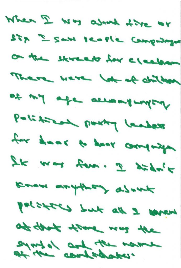 4When I was about five or six I saw people campaigning on the streets for election