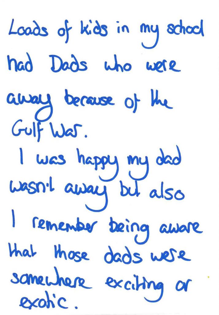 Loads of kids in my school had Dads who were away because of the Gulf War.