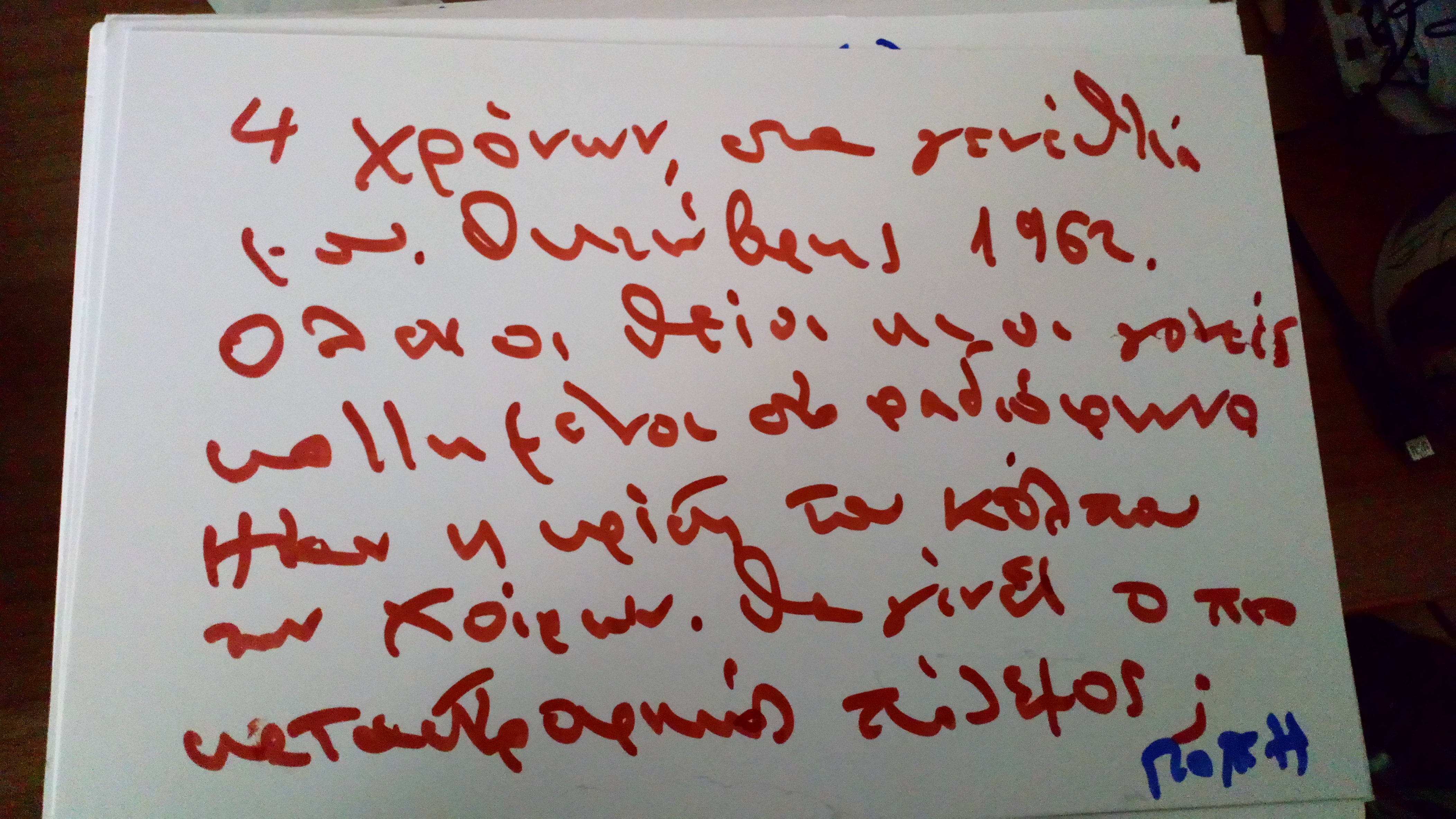 Τεσσάρων χρονών στα γενέθλιά μου. Οκτώβρης 1962. Όλοι οι θείοι και οι γονείς κολλημένοι στο ραδιόφωνο. Ήταν η Κρίση του Κόλπου των Χοίρων. Θα γίνει ο πιο καταστροφικός πόλεμος;